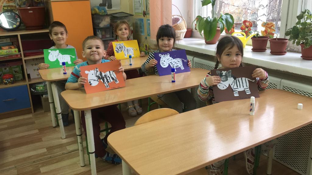 Не только одежда бывает полосатой, дети вспоминали, какие звери, птицы и насекомые носят полосатые наряды, искали и находили в окружении предметы в полоску. Свои "находки" они отразили в рисунках, аппликации. Не забыли упомянуть и "зебру" - пешеходный переход, закрепили правила дорожного движения.